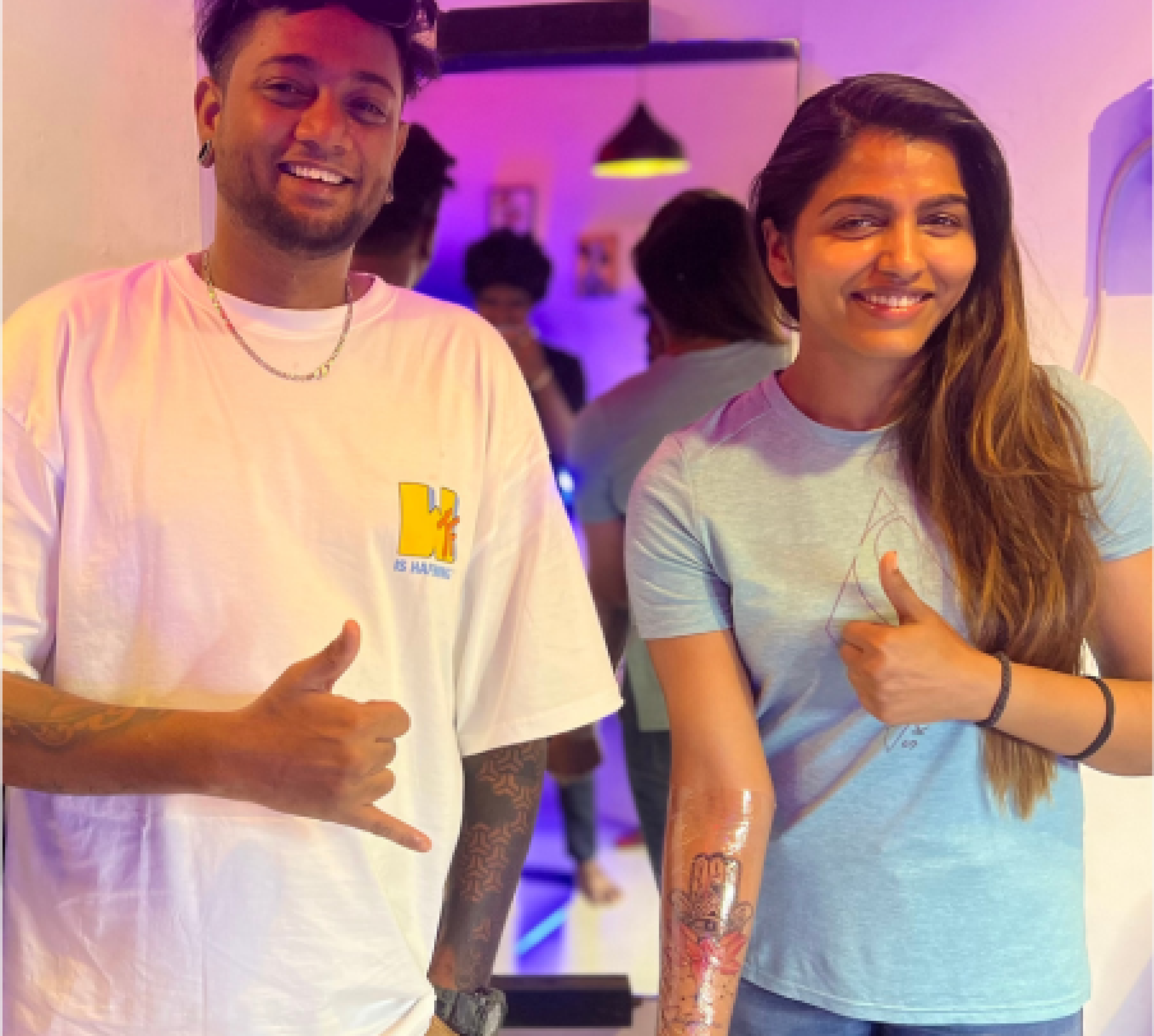 Mojo, a multitalented individual, brings an electrifying energy to the world of tattoos. With a remarkable background in bike stunt championships and a talent for DJing, Mojo infuses each tattoo session with a thrilling blend of artistry and adrenaline. With over 10 Lakh+ tattoos completed, Mojo's expertise spans a wide range of styles and designs.